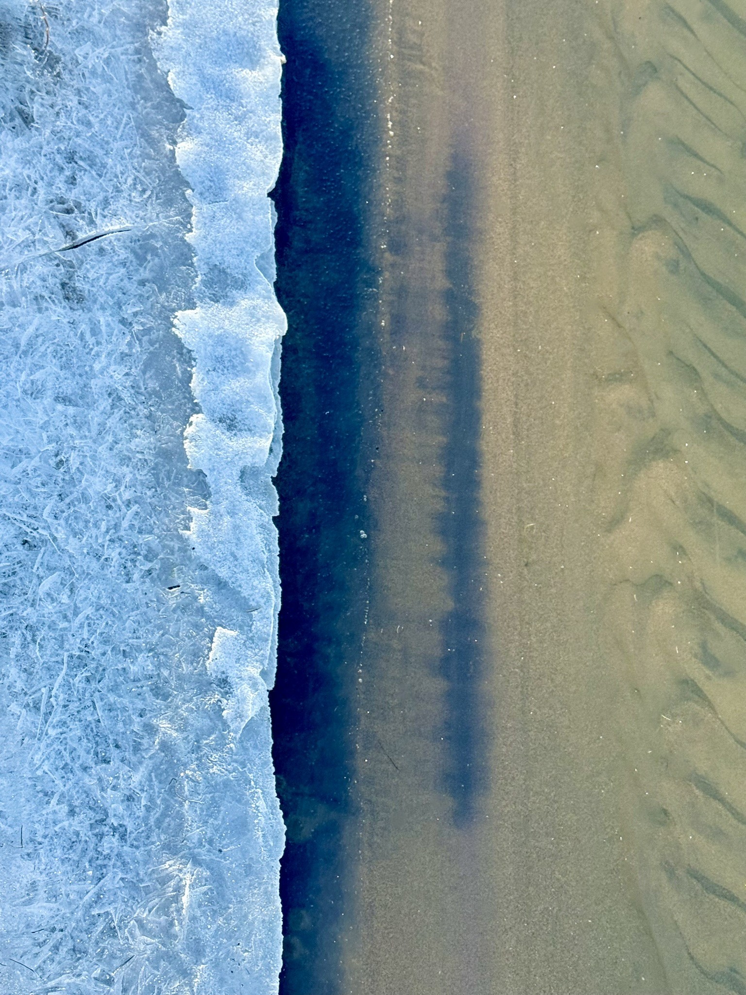 May 30, 2025 – Smoke from forest fires raised air quality levels to the top of the charts giving Little Manitou Lake an eerie other worldly appearance. The heavy mineral content of the water created white caps and the strong winds that day made the waters look more like an ocean than a small lake. All of the photos that day took on a smoke filtered appearance.